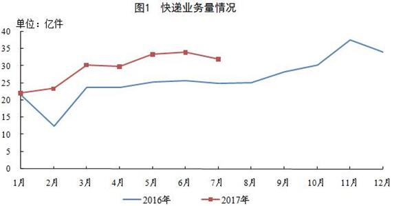7月,全国快递服务企业业务量完成32亿件,同比增长28.4%;业务收入完成391.7亿元,同比增长25.8%。